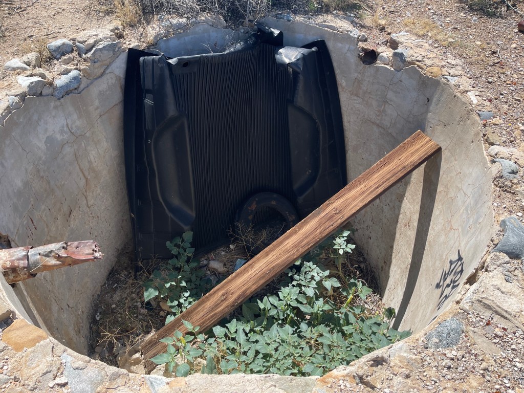 The GPS will direct you past the ruins of the cooperative; according to the maps, Llano is its post office. The city claims a population of 1,200, though they all seem to be in hiding. There’s a smattering of trailers and a few single-story ranch homes that might as well be trailers, and sand. Unimaginative graffiti covers the ruins closest to the highways and the remnants of the kiln. The ground is covered in broken beer bottles and corroded cans, a few so fully rusted I wondered if they were tins from the time of the cooperative.